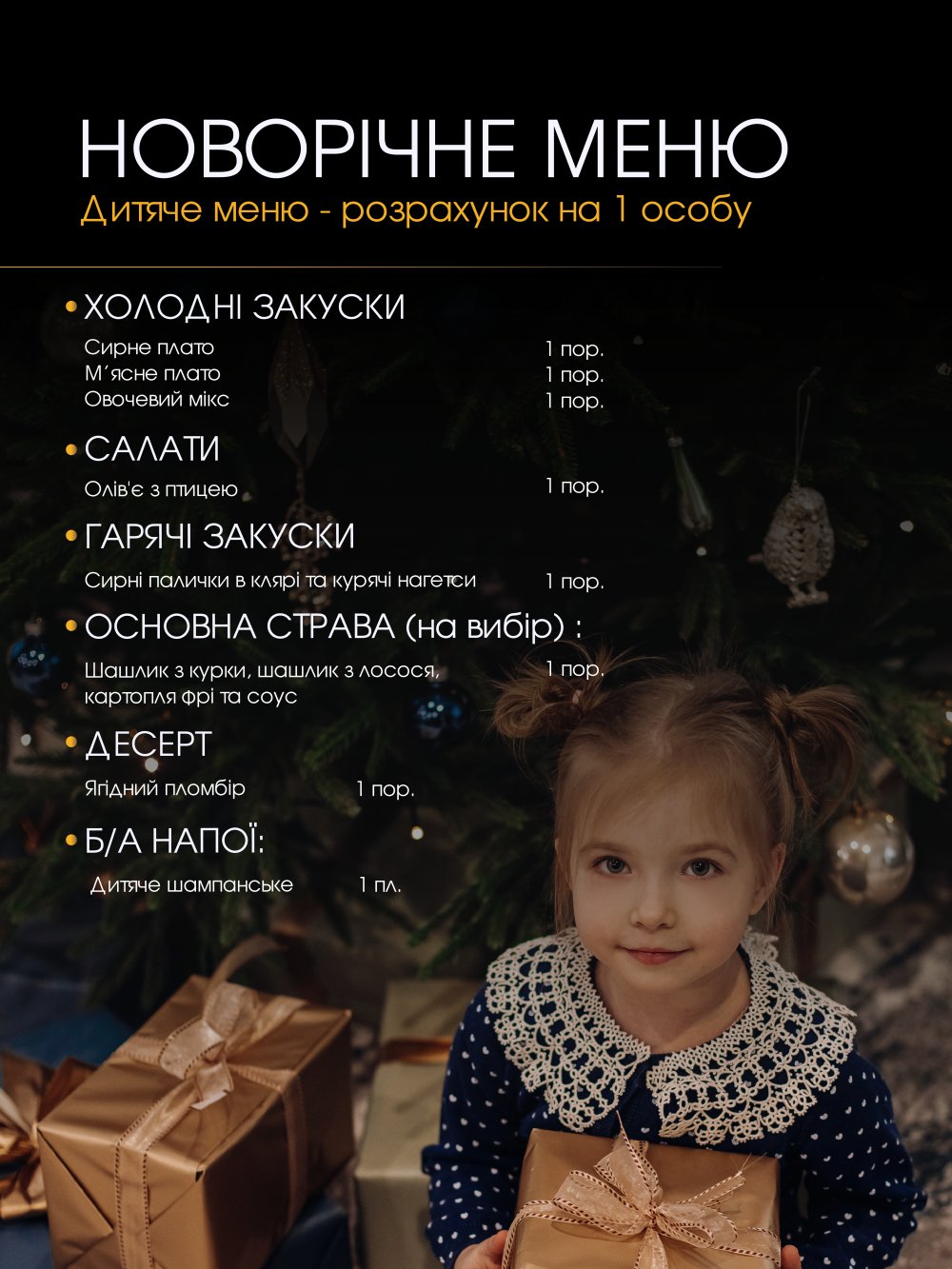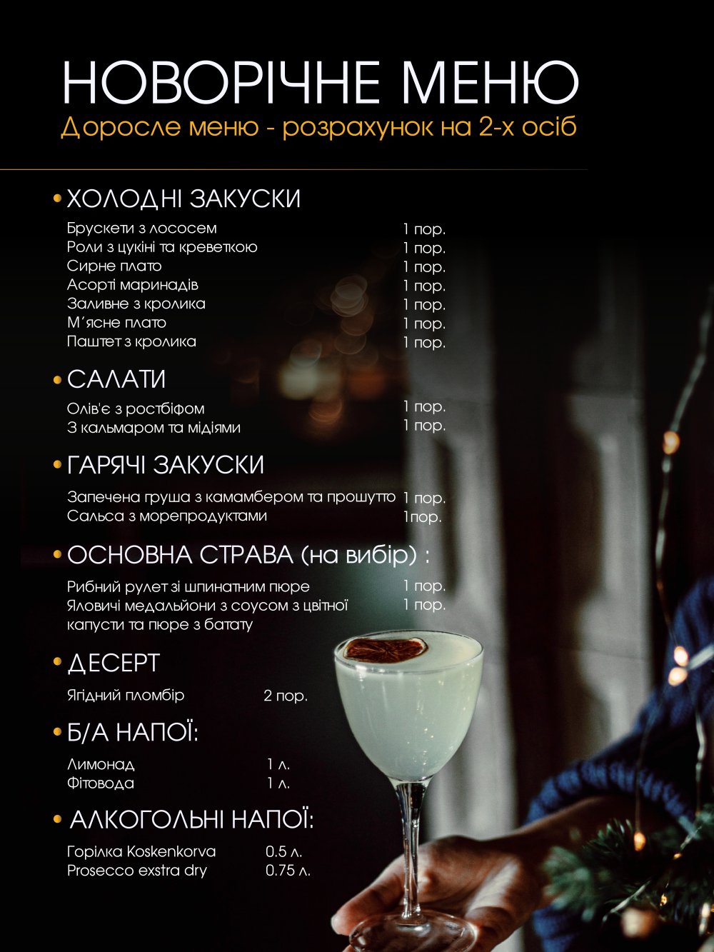 - страви згідно меню ресторану