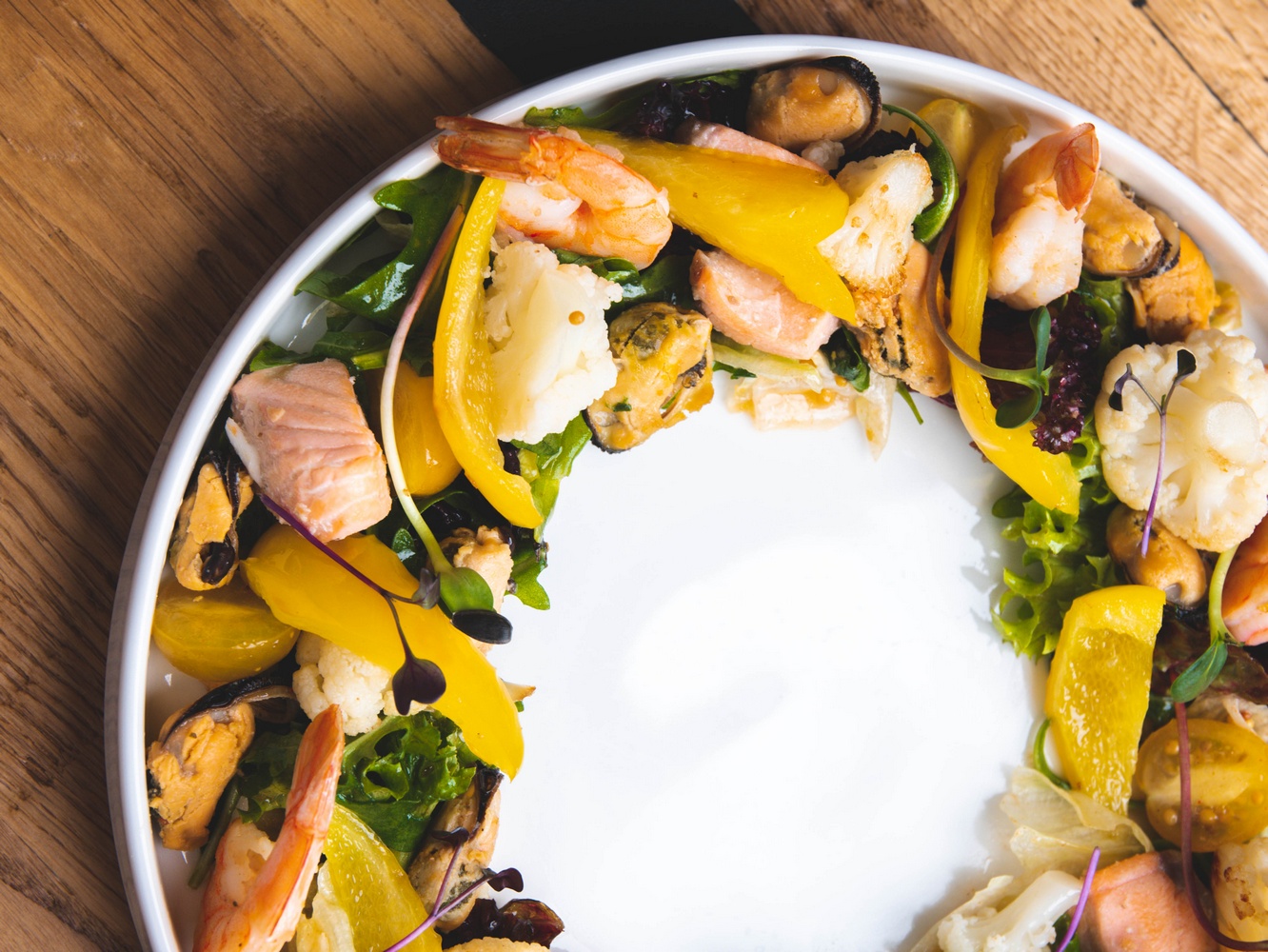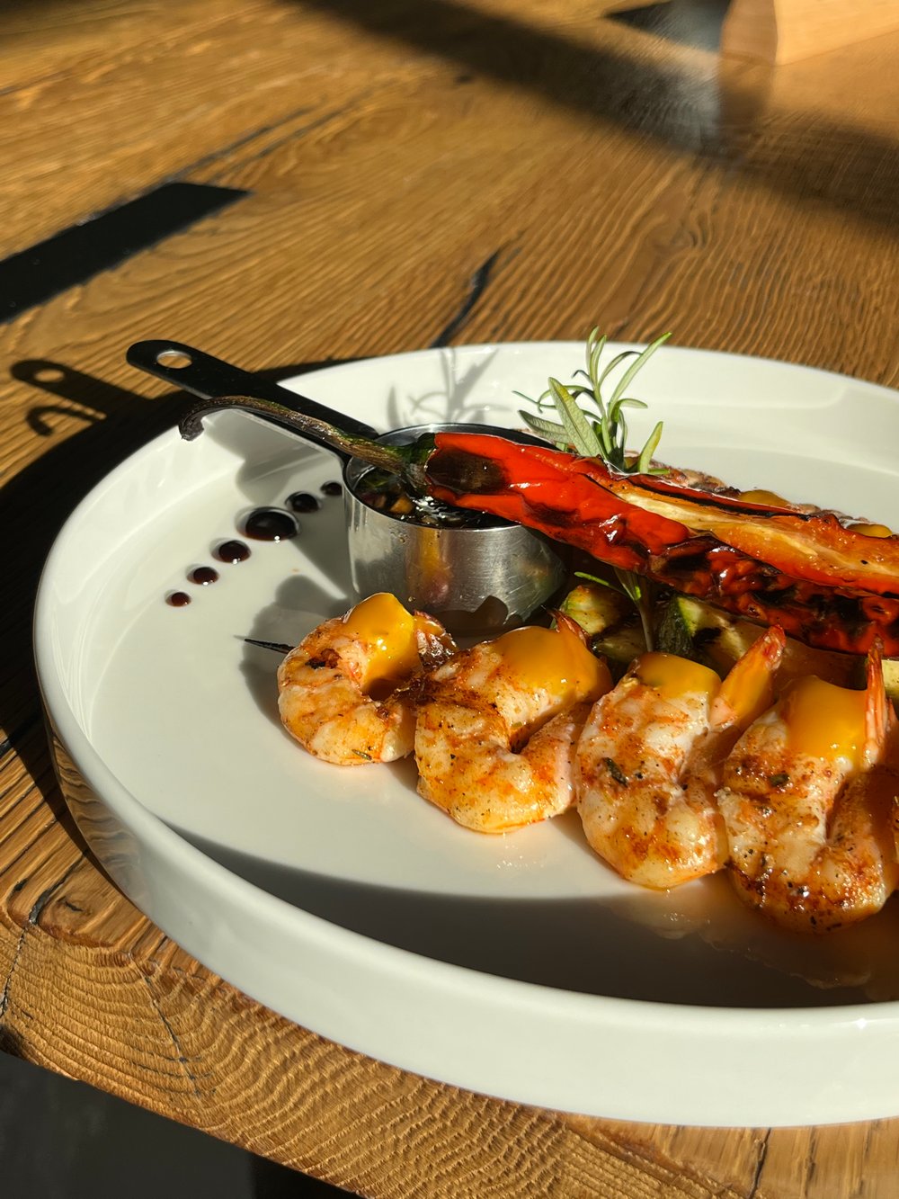 Креветки-гриль з пюре з манго та азіатським соусом